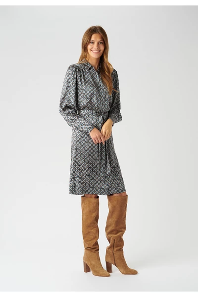 De Cadenia -shirtjurk van Dea Kudibal is een prachtige shirtjurk gemaakt in een heerlijk zijden stretch. De jurk is voorzien van de prachtige baanafdruk die is ontworpen door Dea Kudibal en een volumineuze ballonhuls.