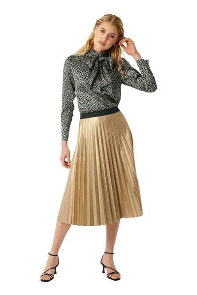 Blouse met boogkraag en hoge manchetten.