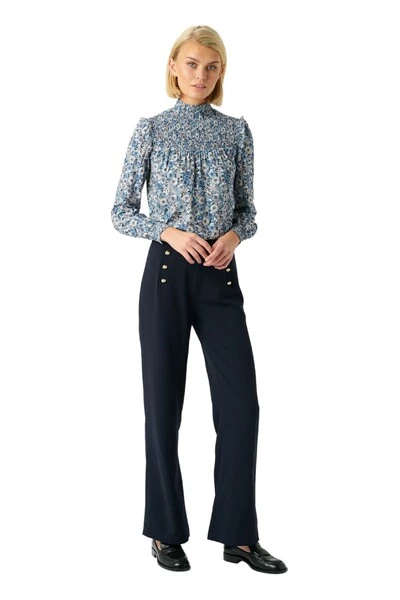 Blouse met smokdetails bij nek, schouder en manchetten. Ruches details aan de mouwrand