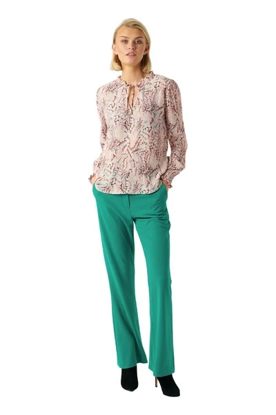 Blouse met smokdetail bij manchetten en touw in de nek