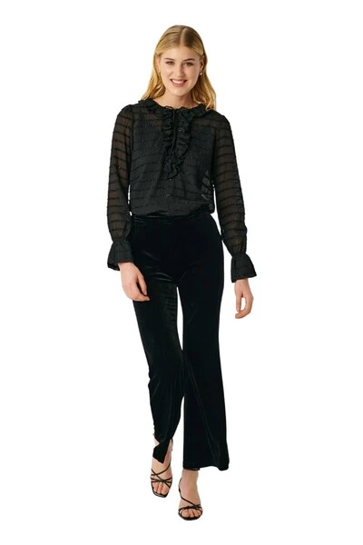 Blouse met ruchesdetails, mouwen met elastische band en snaren met kwastjes
