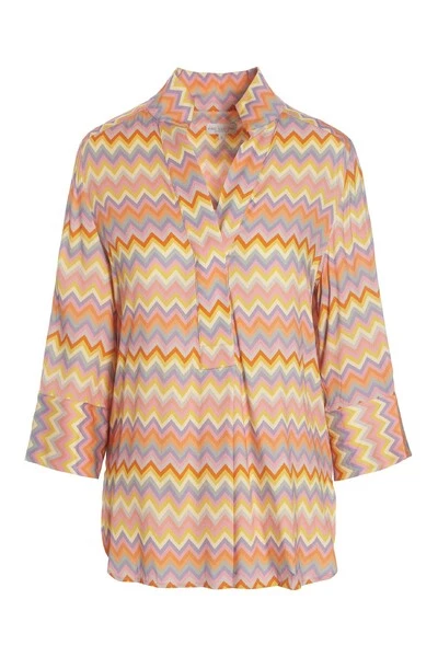 Blouse met verborgen placket en driekwart mouwen en hoge manchetten.