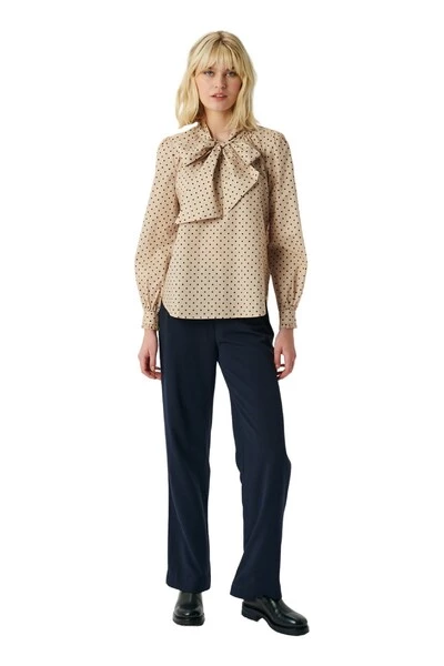 Shirt met boog, puff mouwen en ruches details bij manchet. Niet -stretch stof
