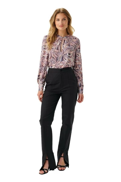 Blouse met volumineuze mouwen en druppelvormige opening aan de voorkant. Materiaal: 95% viscose, 5% elastaan Deze beschrijving is automatisch vertaald.