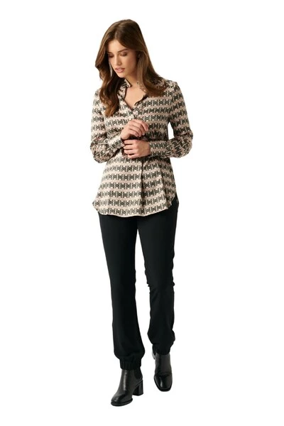 Blouse met hoge manchetten, staande kraag en verborgen placket.