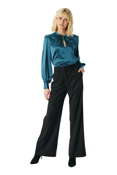 Blouse met volume mouwen en traanopening aan de voorkant.