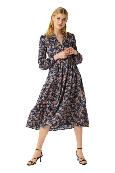 MIDI -jurk met placket, volumehonden en verborgen zakken aan de zijkanten.
