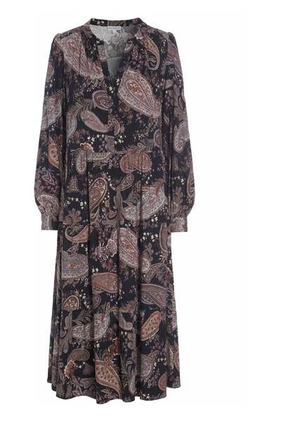 MIDI -jurk met placket, volumehonden en verborgen zakken aan de zijkanten.