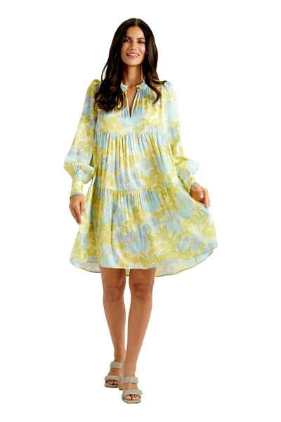 Mini-jurk met ballonmouwen, ruches aan kraag en manchetten.