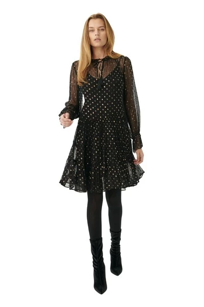 Kort jurkje met ruches en tunnelkoord met kwastjes.