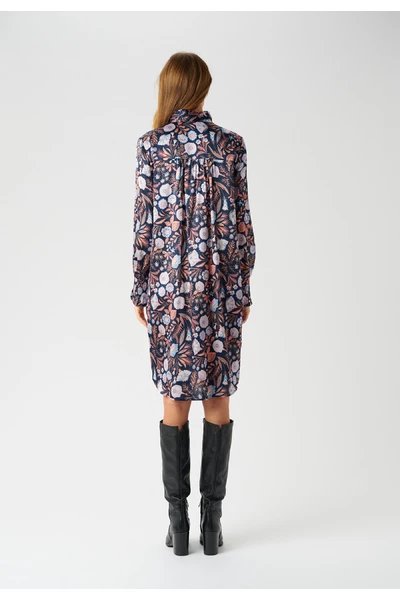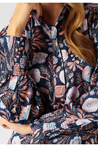 De Millia -jurk van Dea Kudibal is een prachtige jurk gemaakt in een prachtige zijden stretch -stof. De jurk is voorzien van de prachtige Florentijnse Fonte-print die is ontworpen door Dea Kudibal en een smokkanchet en een stand-up kraag met een knopafsluiting aan de voorkant.