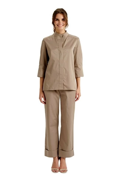 Shirt met hoge manchetten en verborgen sluiting. Materiaal: 100% katoen Productstijl-ID: 05-0422NS-CO-1501 Deze beschrijving is automatisch vertaald.