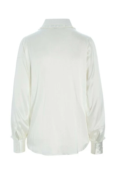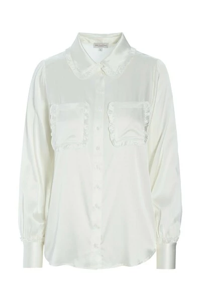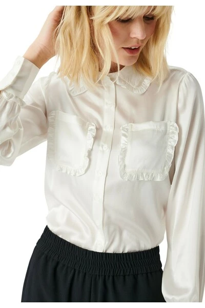 Shirt met ruches details bij kraag, manchetten en zakken passen: regelmatig fit vooraan: 68 Terug: 68 Het model is 176 cm en gebruikt een maat s materialen rek zijden satijn rek zijden satijn: 90% zijde, 10% elastaan hoe hand wassen wassen Alleen droog schoonbaar zijn niet droog