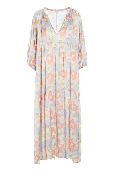 Maxi-jurk met V-hals en 3/4-mouwen.