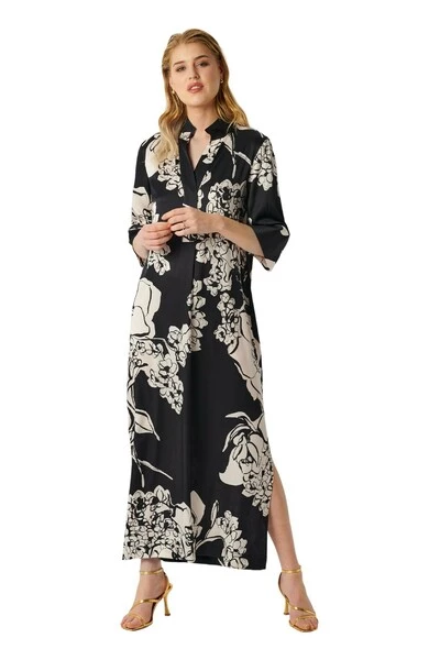 Kaftanjurk met grafische print en zijsplitten. Normale pasvorm.