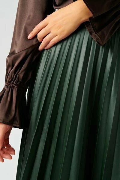 Geplooide midi -rok met elastische band in de taille. Niet -stretch materiaal dat we aanbieden: