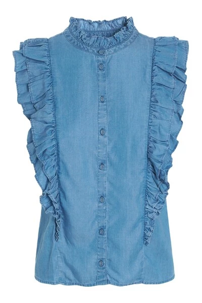 Top met knoopsluiting en ruches. Materiaal: 100% Tencel Productstijl-ID: 26-0422NS-CO-2039 Deze beschrijving is automatisch vertaald.