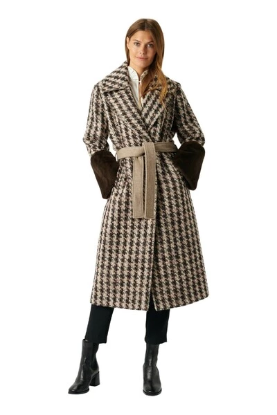 Jas met ceintuur in de taille en bontdetails op de manchet.