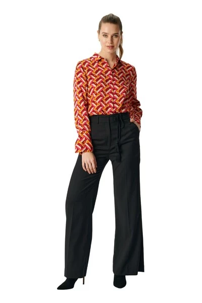 Wijd beenbroek met stringdetail in taille